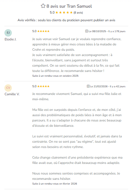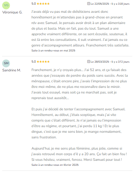 Je suis Samuel, diététicien diplômé d'État et spécialisé en perte de poids durable et équilibre digestif.